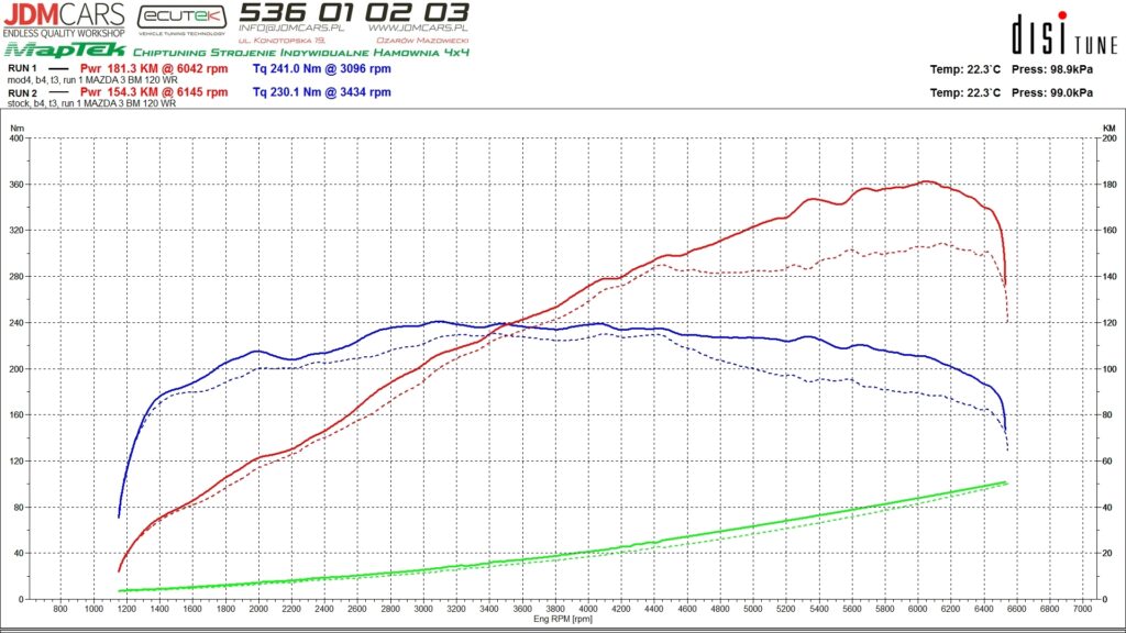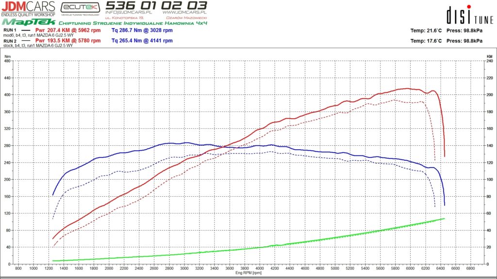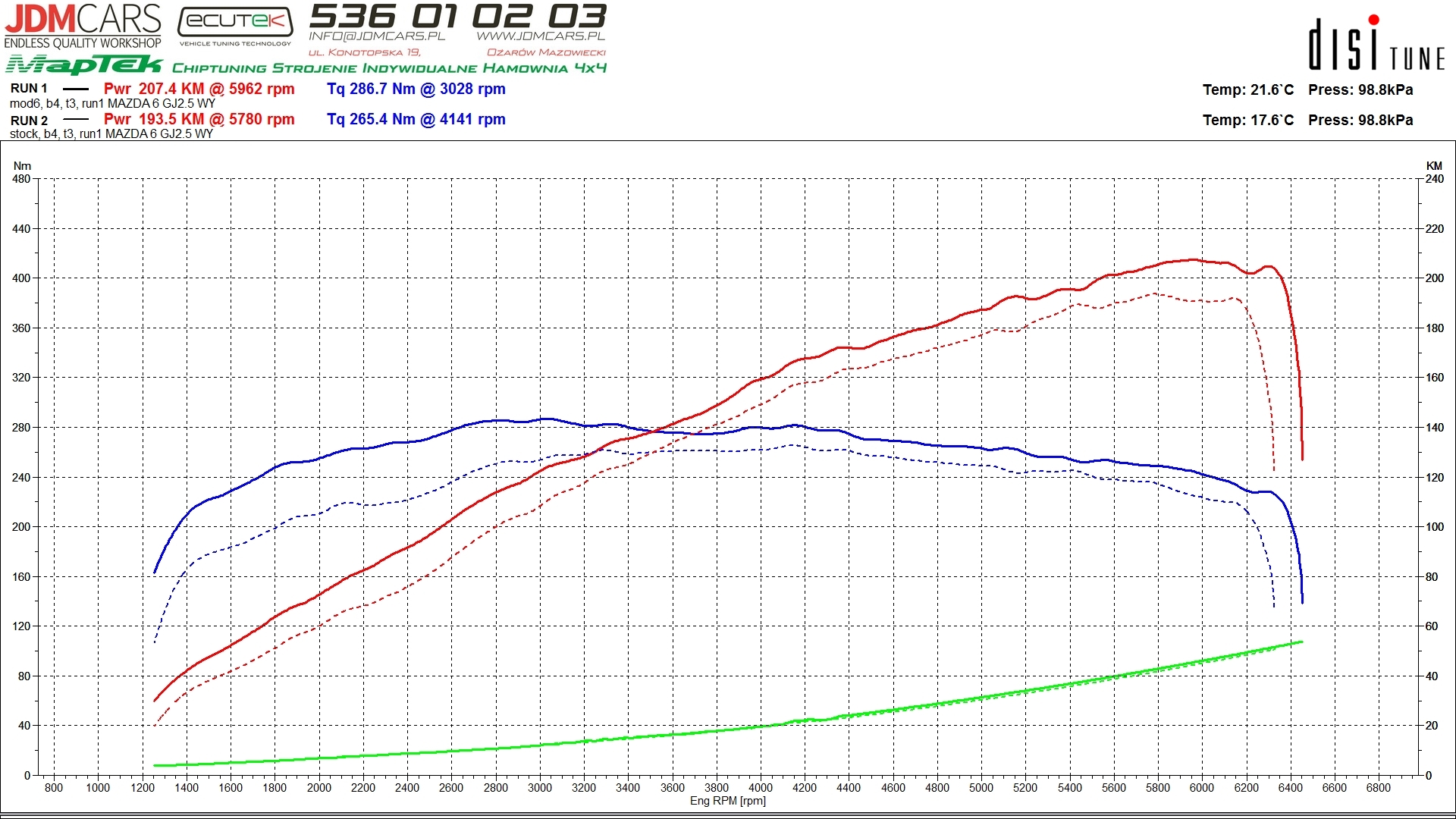 Parametry uzyskane po modyfikacji: 207KM 287Nm