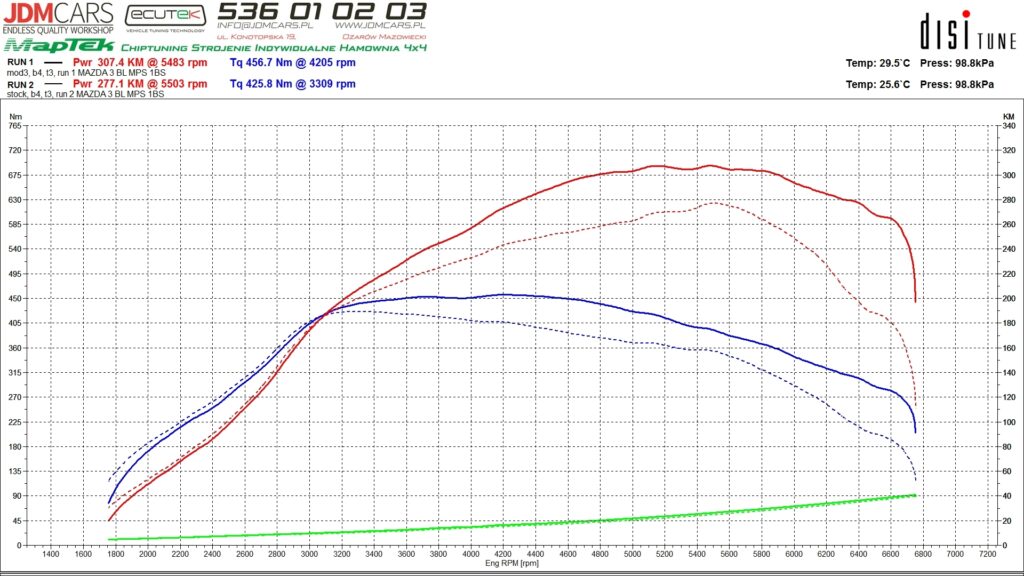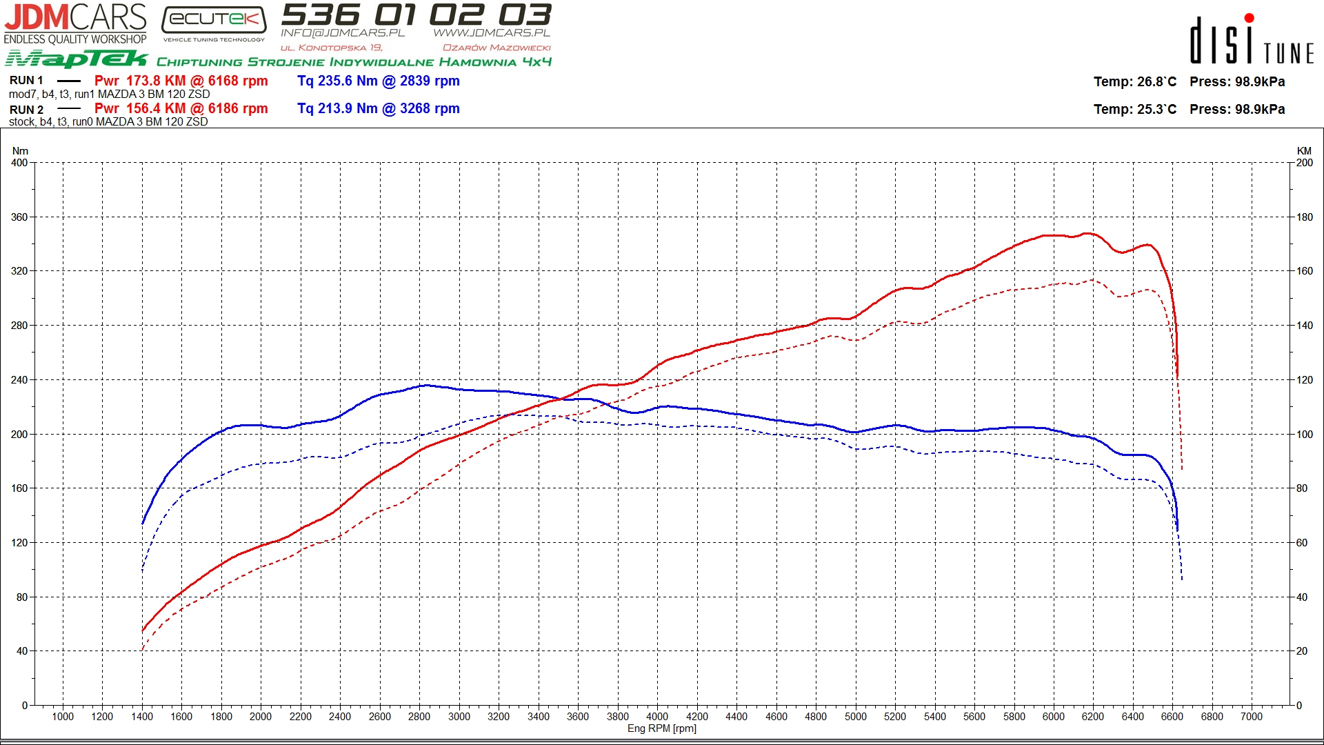 Parametry uzyskane po modyfikacji: 181KM 238Nm