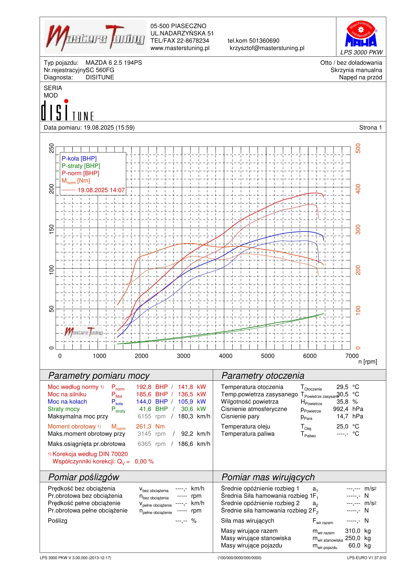 Zmierzone parametry seryjne: 193KM 253Nm