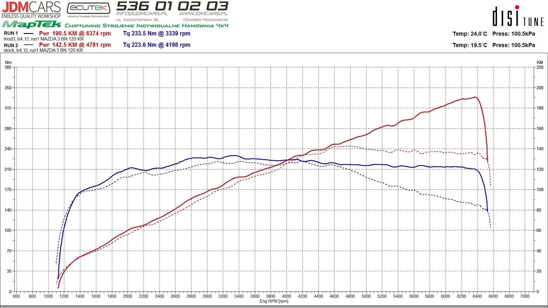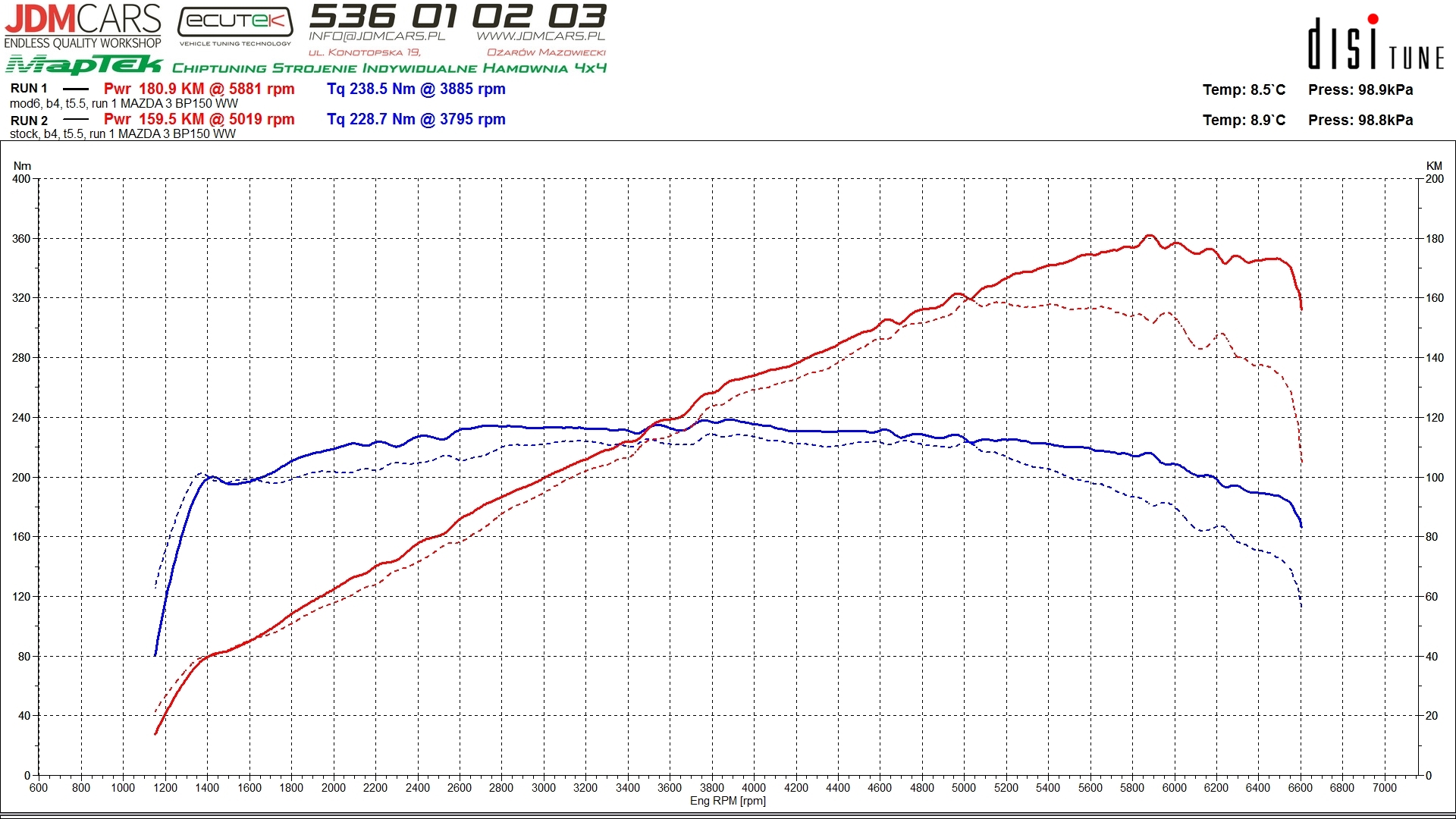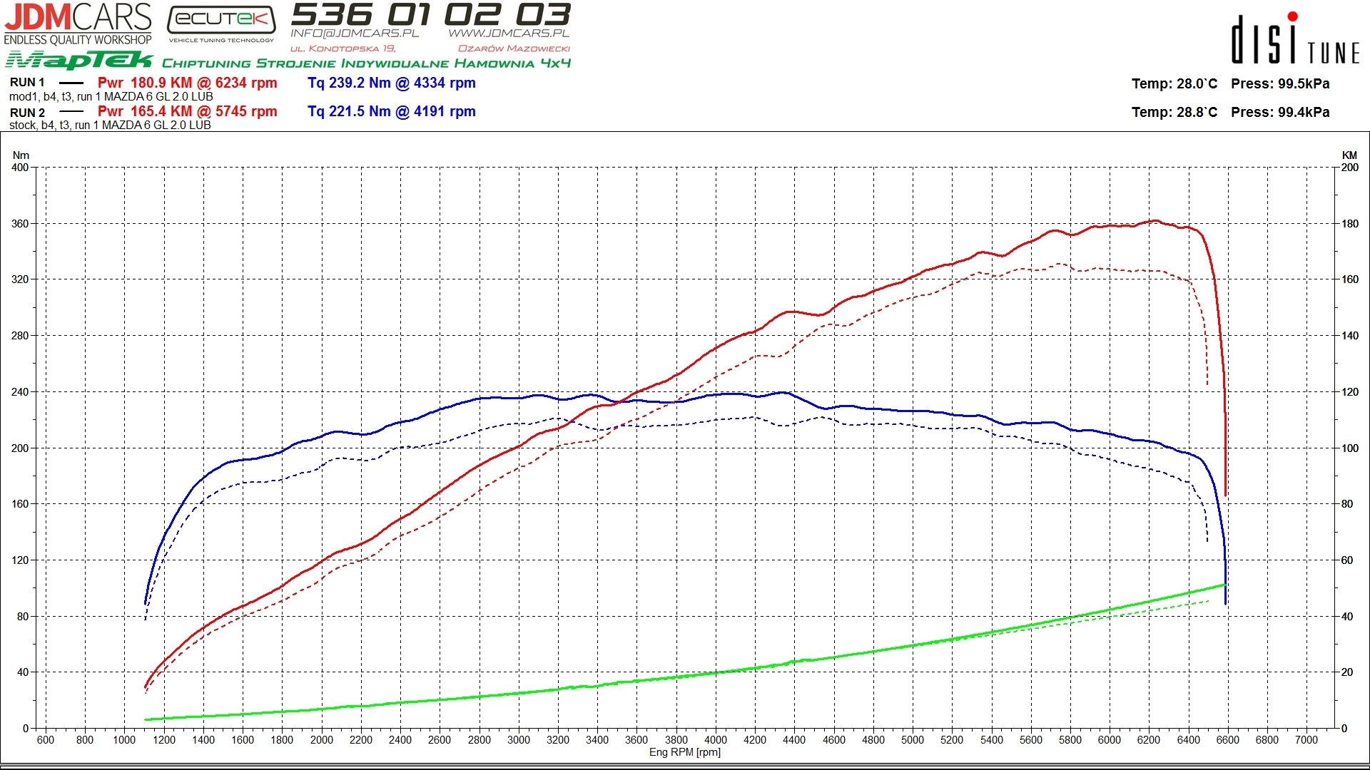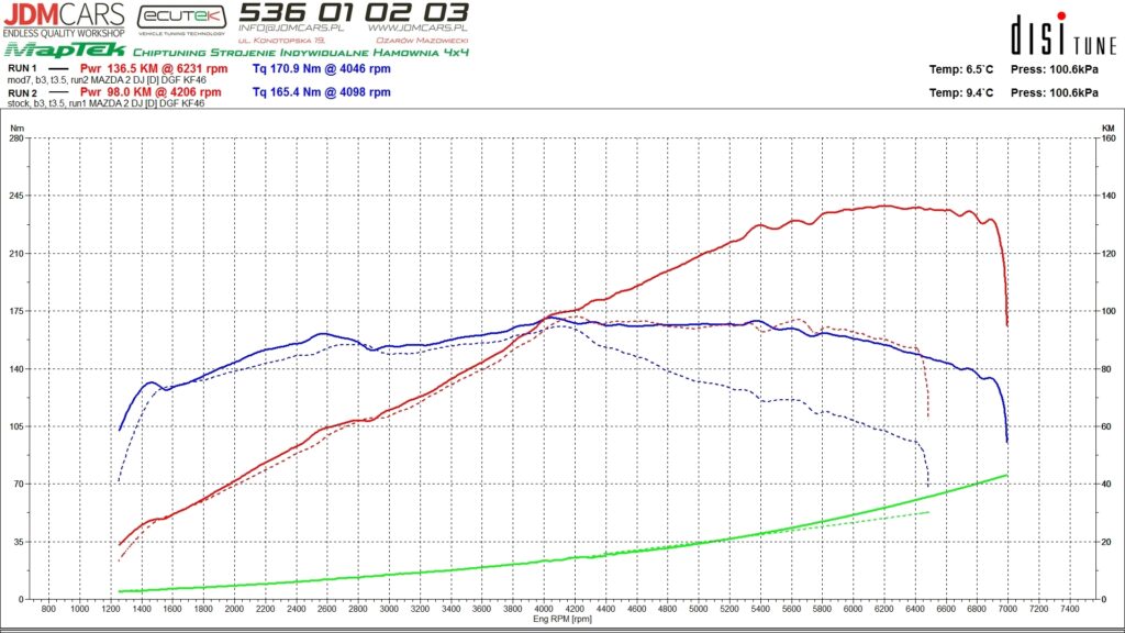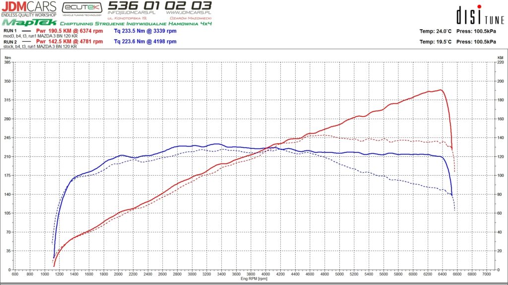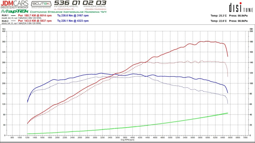 Parametry po wykonaniu modyfikacji: 181KM 239Nm