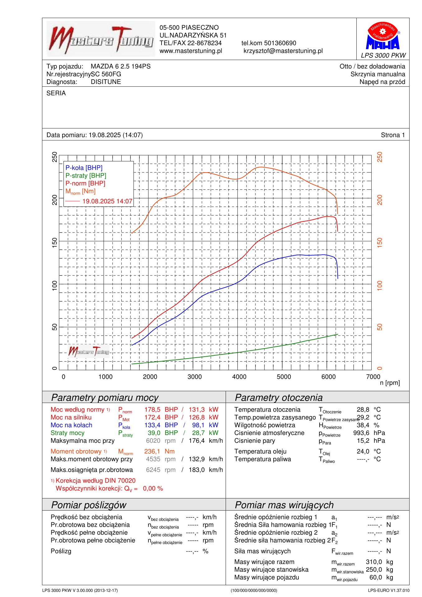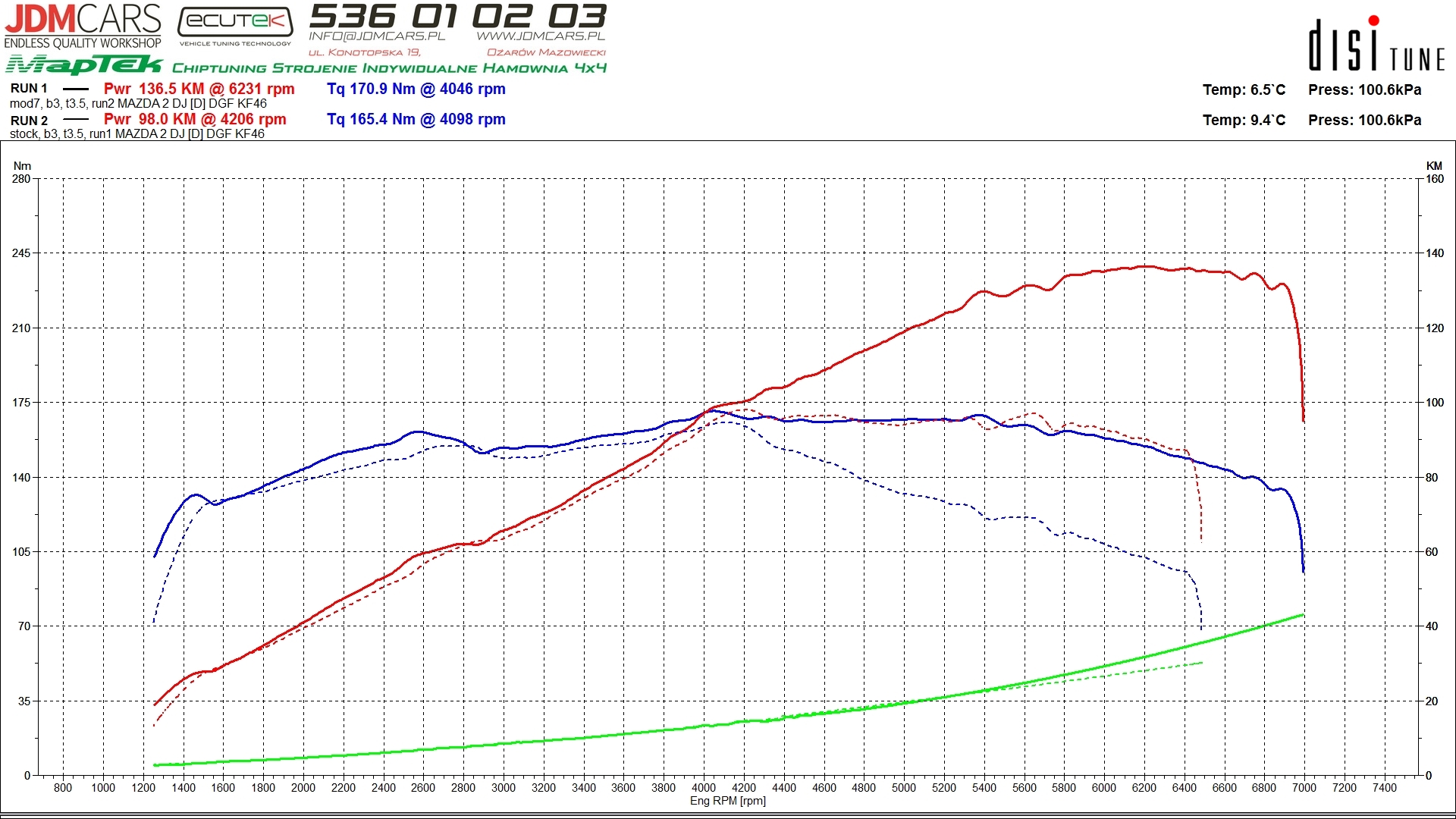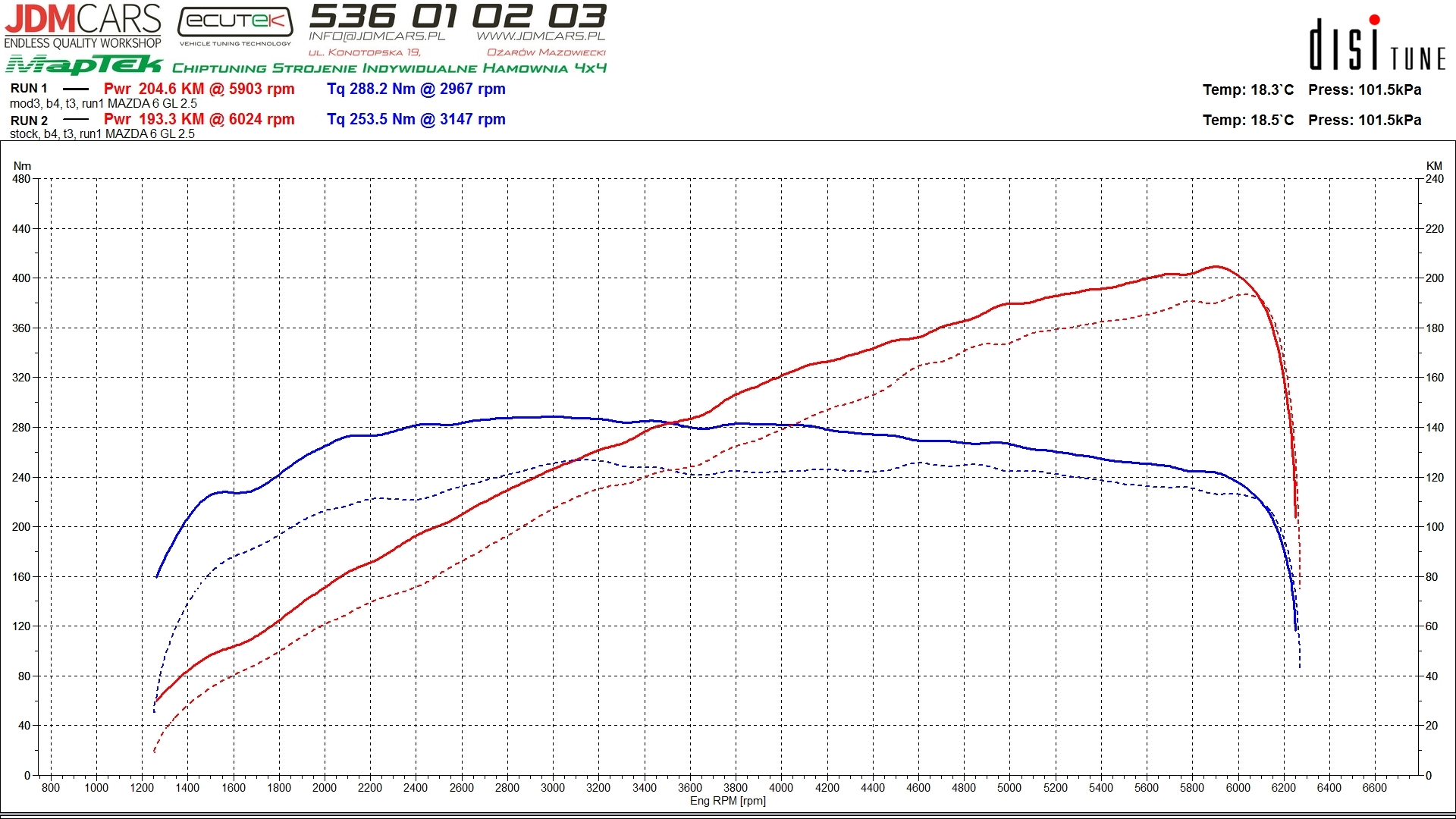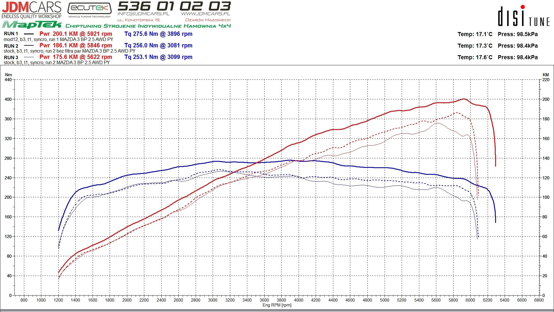 Parametry po wykonaniu modyfikacji: 181KM 239Nm