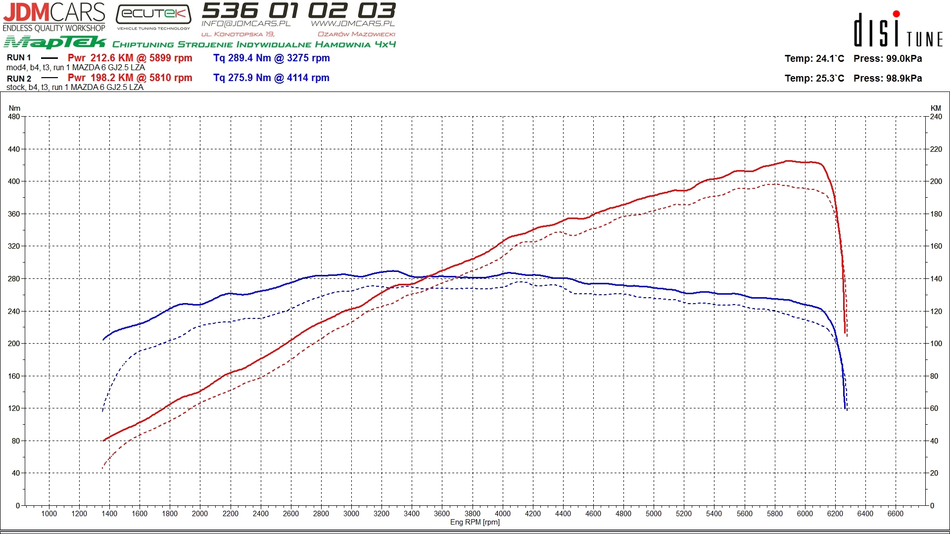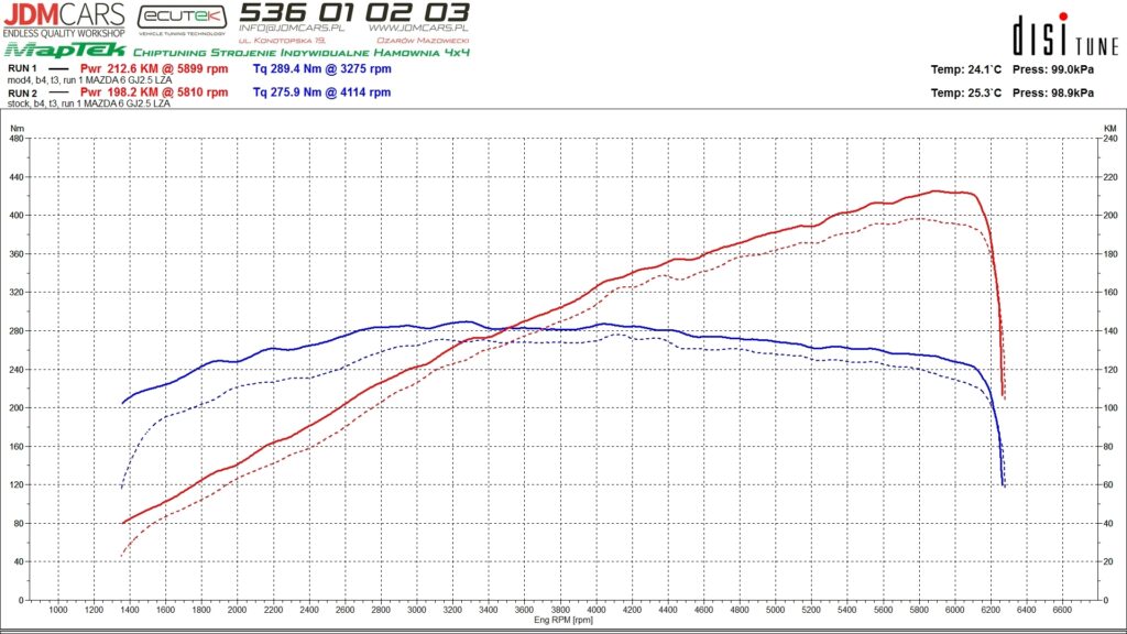 Parametry uzyskane po modyfikacji: 213KM 289Nm