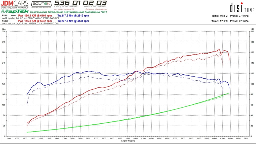 Parametry po modyfikacji: 166KM 217Nm