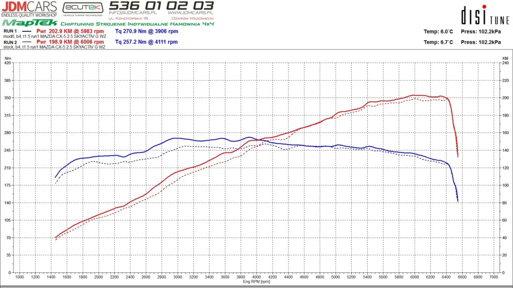 Jak widać przyrost mocy nie był zbyt duży, natomiast przyrost momentu obrotowego całkiem pokaźny i to w najbardziej użytkowym zakresie obrotów.