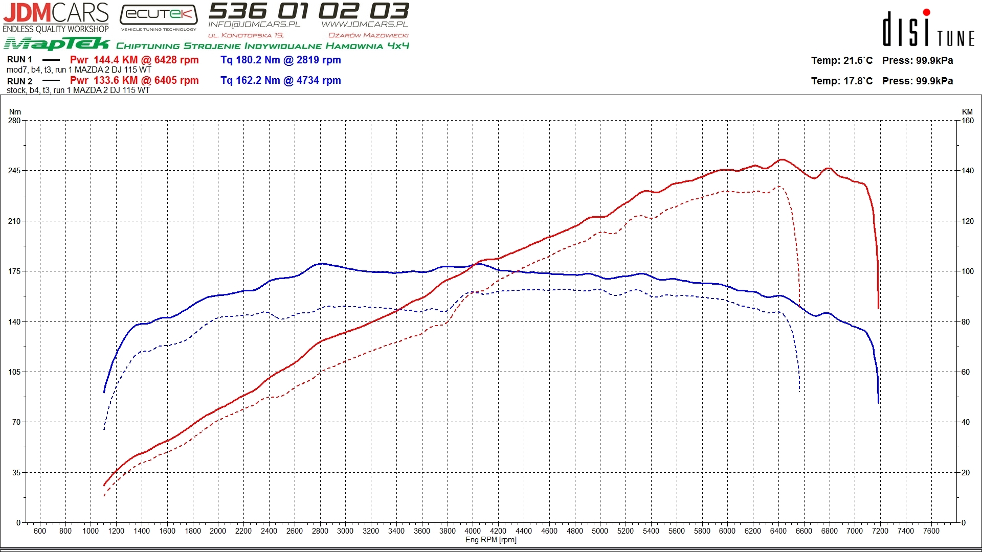 Zmierzone parametry: 98KM 165Nm