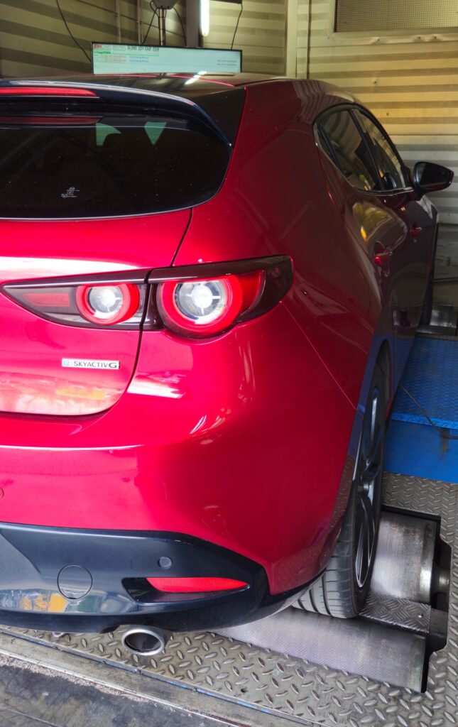 Mazda 3 BP z automatyczną skrzynią biegów i silnikiem 2.0 o deklarowanej przez producenta mocy 150KM i momencie 213Nm.