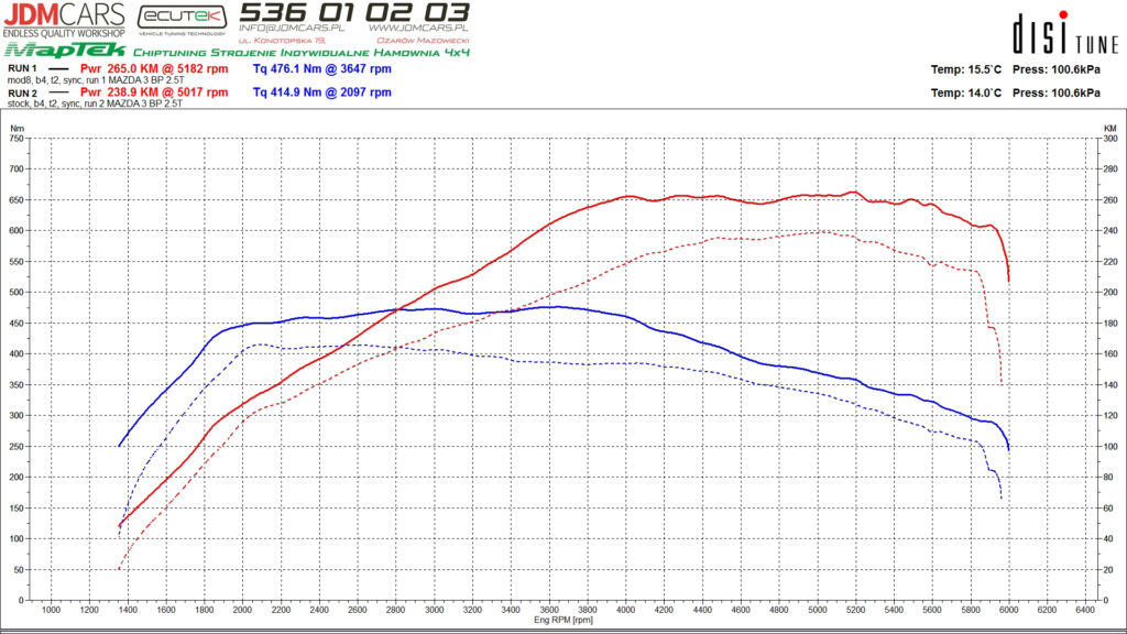 Przy okazji logów dynamicznych zmierzyłem podstawowe osiągi auta seryjnego i po modyfikacji. Pomiary robione były w trybie Sport i skrzyni w automacie bez zabawy manetkami.